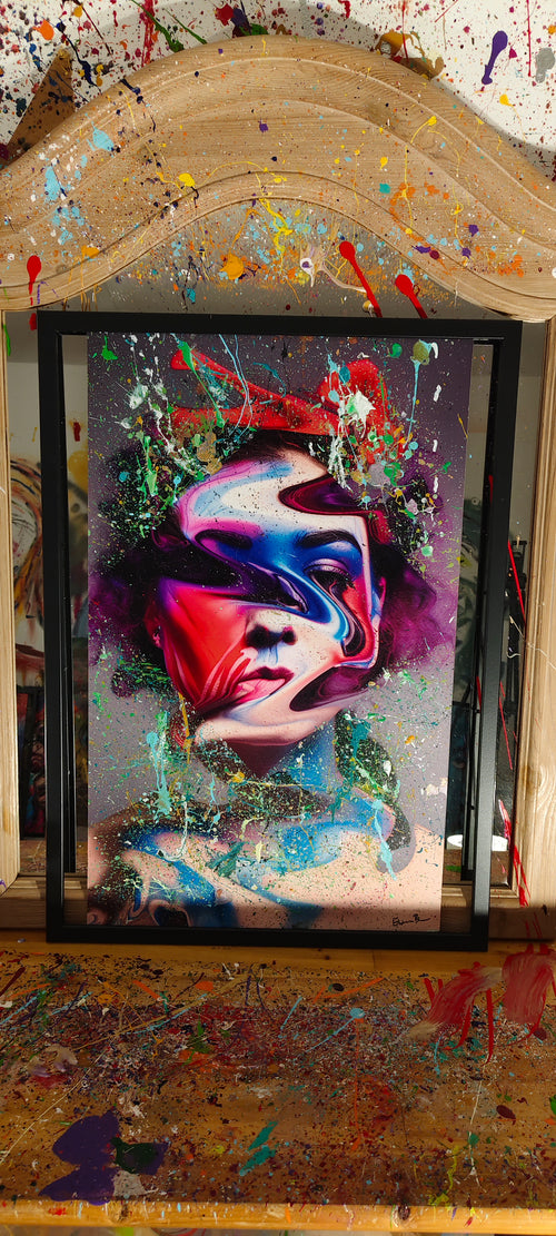 „Chromatic Faceshift“ ist ein eindrucksvolles Originalgemälde, das Identität, Verformung und farbintensive Emotionen zu einer modernen, kraftvollen Komposition verschmelzen lässt. Das Gesicht wirkt wie in mehreren Ebenen gleichzeitig existierend – verzerrt, verschoben und dennoch voller Ausdruckskraft.